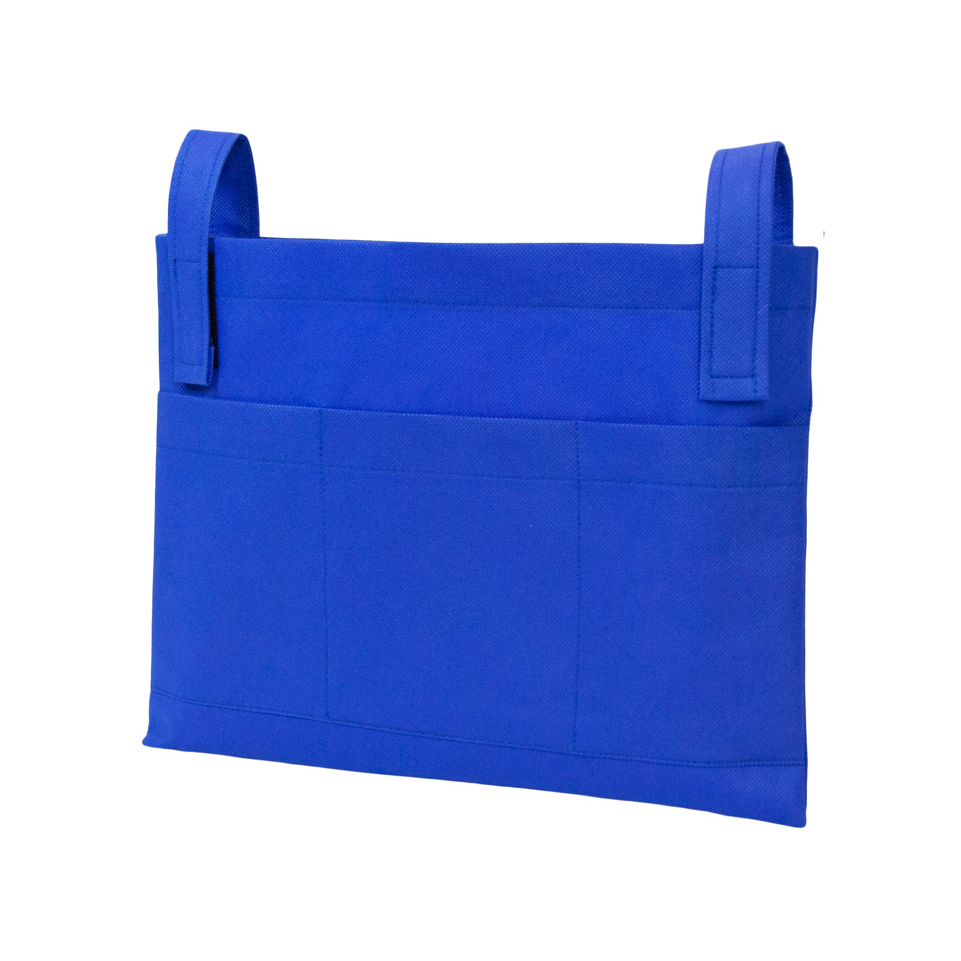 Great for hospital beds, wheelchairs, strollers and lockers, this standard organizer has 2-top velcro loop closures and 3 front pockets and a clear back pocket. This convenient carry-all is made from bio-friendly recyclable materials, and makes an excellent promotional opportunity for nursing homes, home health providers, clinics, and schools.